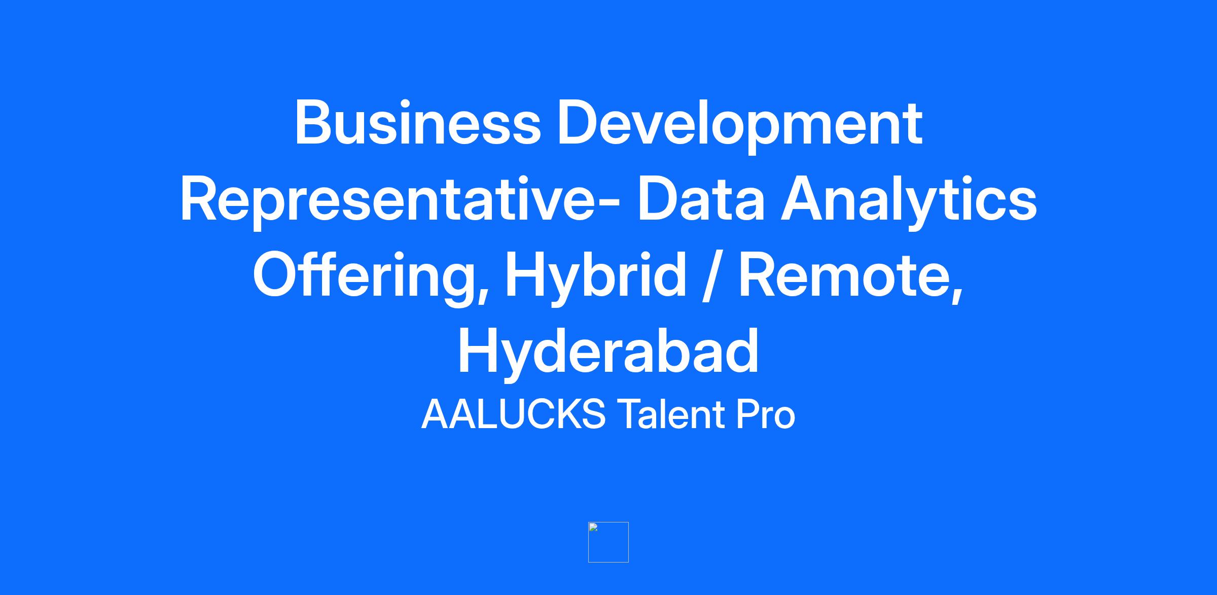 Position: Business Development Representative- Data Analytics Offering, Hybrid / Remote, Hyderabad