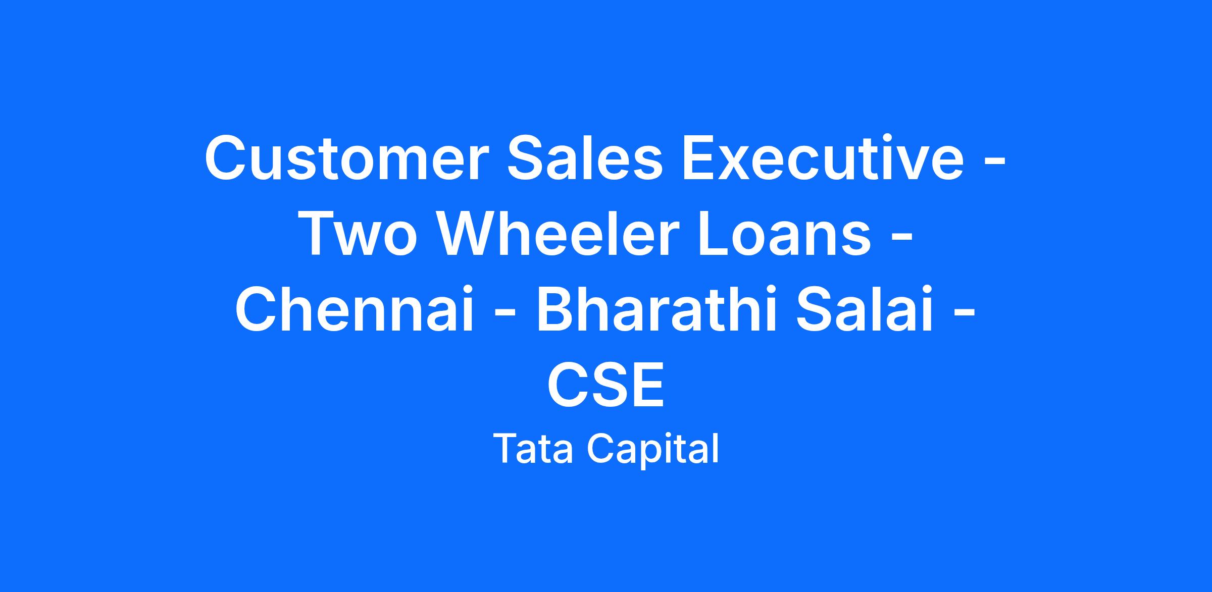 Customer Sales Executive - Two Wheeler Loans - Chennai - Bharathi Salai - CSE
