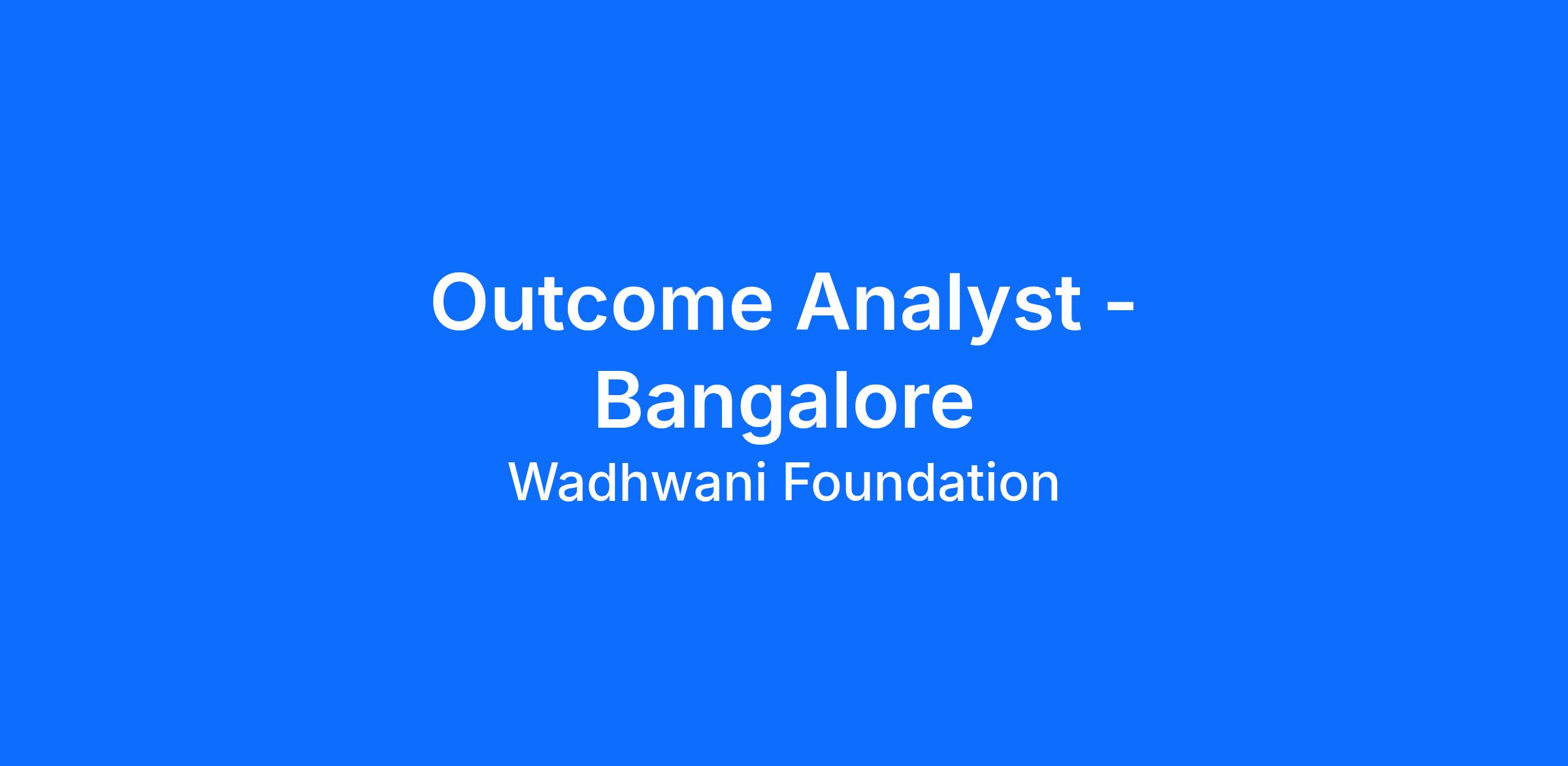 To further Wadhwani Foundationâs mission of accelerating job growth through skilling and entrepreneurship, we are seeking an Outcomes Analyst â Ecosystem Impact to support the measurement and improvement of program outcomes across our Skilling and Entrepreneurship initiatives in India.