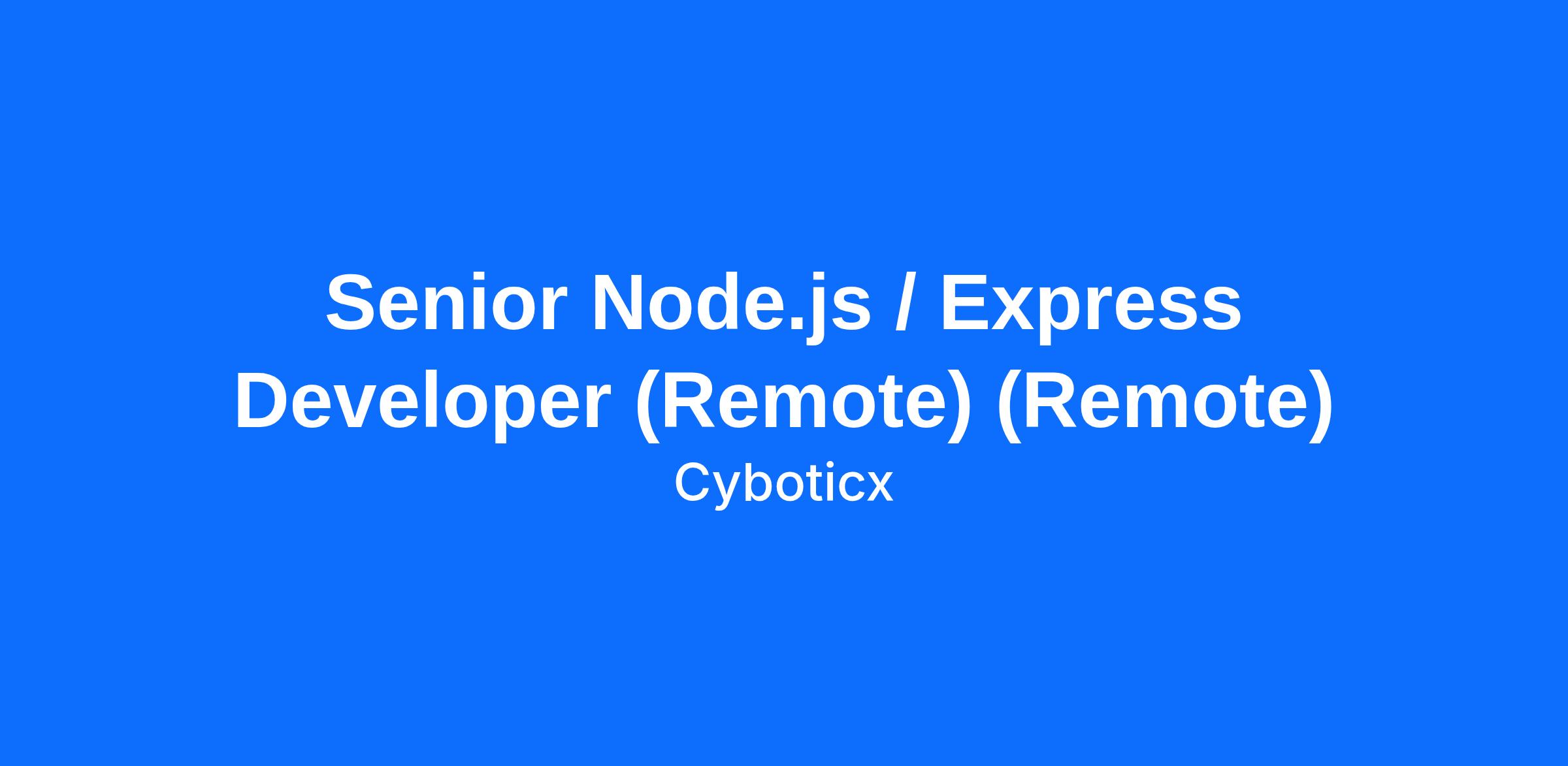 Senior Node.js / Express Developer (Remote) (Remote)