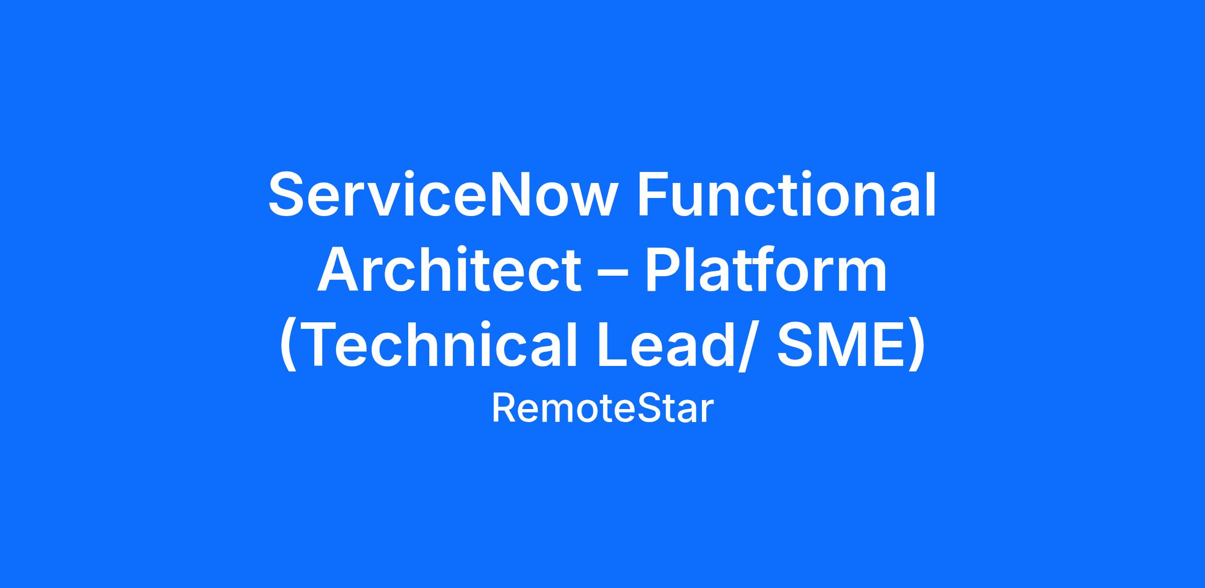 ServiceNow Functional Architect – Platform (Technical Lead/ SME)