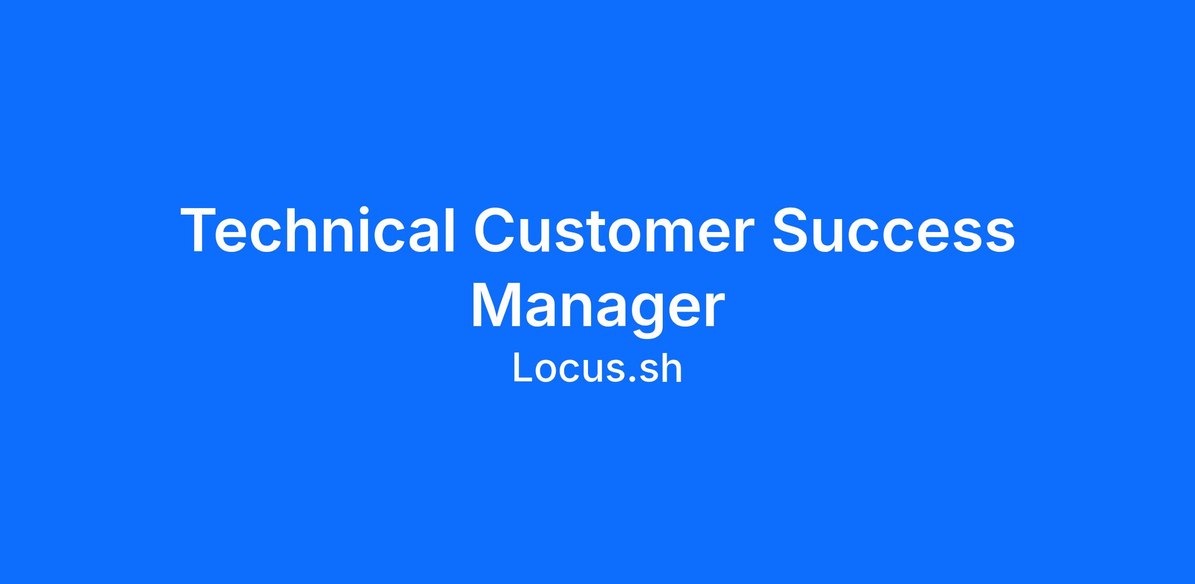 Locus is seeking a Technical Customer Success Manager who will be responsible for working with and supporting the customer to derive Operational Value and Success from the Locus